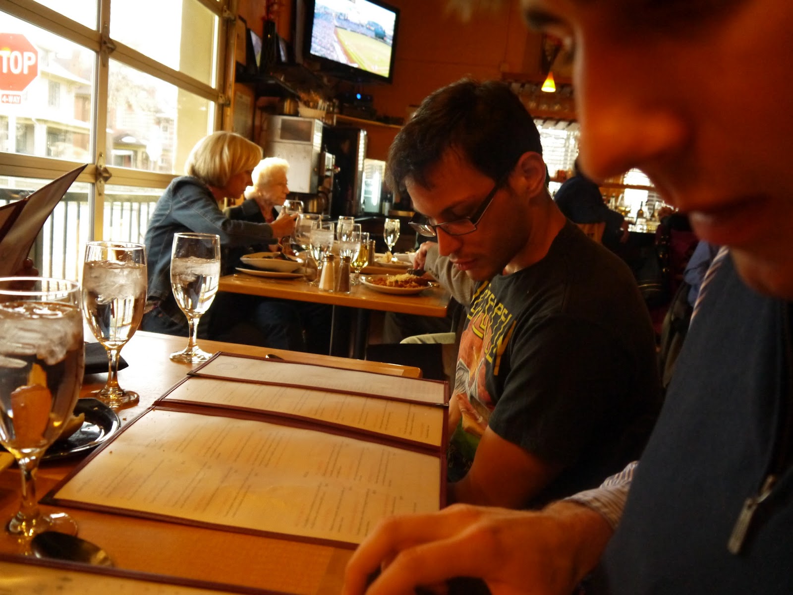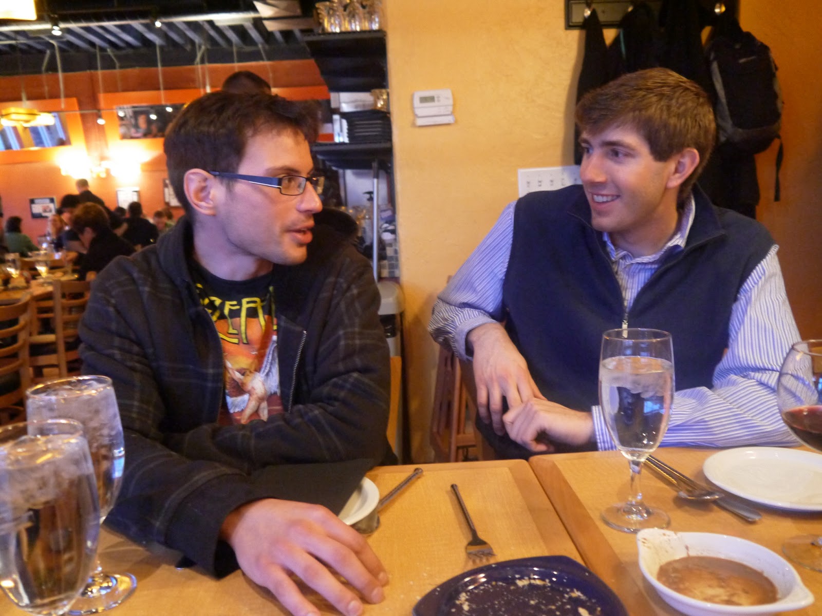 To celebrate the big 2-5 Mom took me, HBL, Jean, Mike and Zig out to dinner at Shells and Sauce, one of our favorite neighborhood haunts. It’s always crazy busy on a Friday night, so we had to squeeze in to a table in the corner. This turned out to be a REALLY good thing as we were removed from the craze of the restaurant, where people were literally jammed arm to arm at the bar.