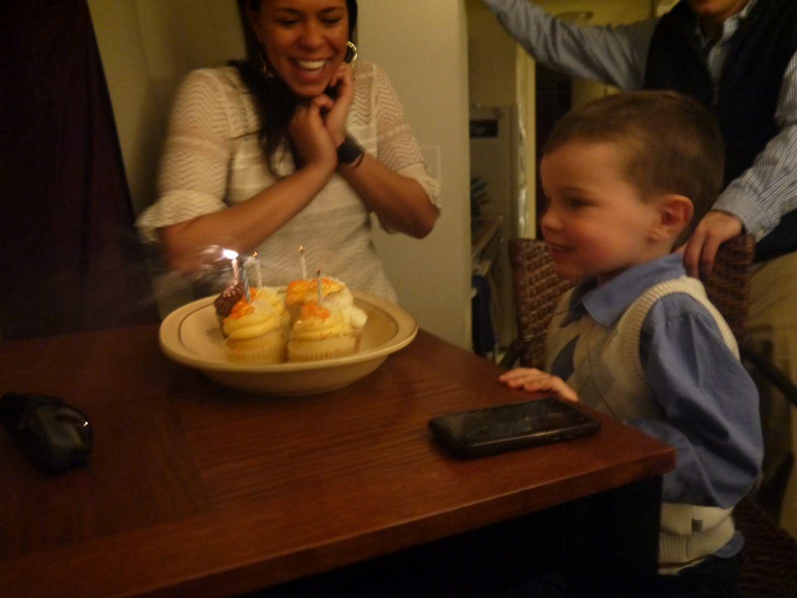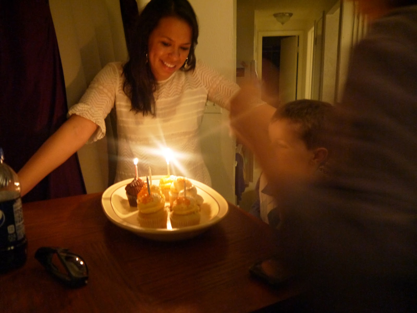 My mom got those candles that light again after blowing them out, so Zig had to help me with them. Even with the two of us, it took a good five minutes to blow the candles out!