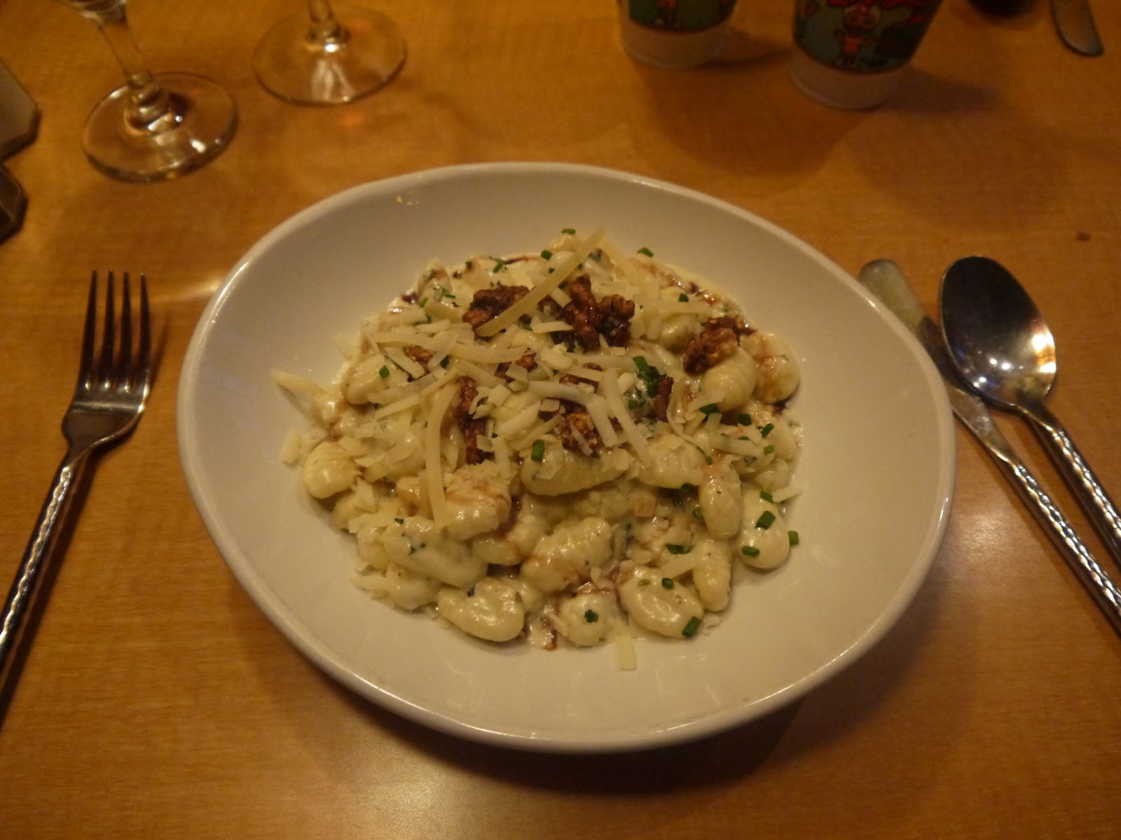 Once we pushed our way through the crowd and sat at our table (thank god for reservations!) we were regaled with lots of bread and the signature Shells and Sauce balsamic dressing. Zig LOVED it!