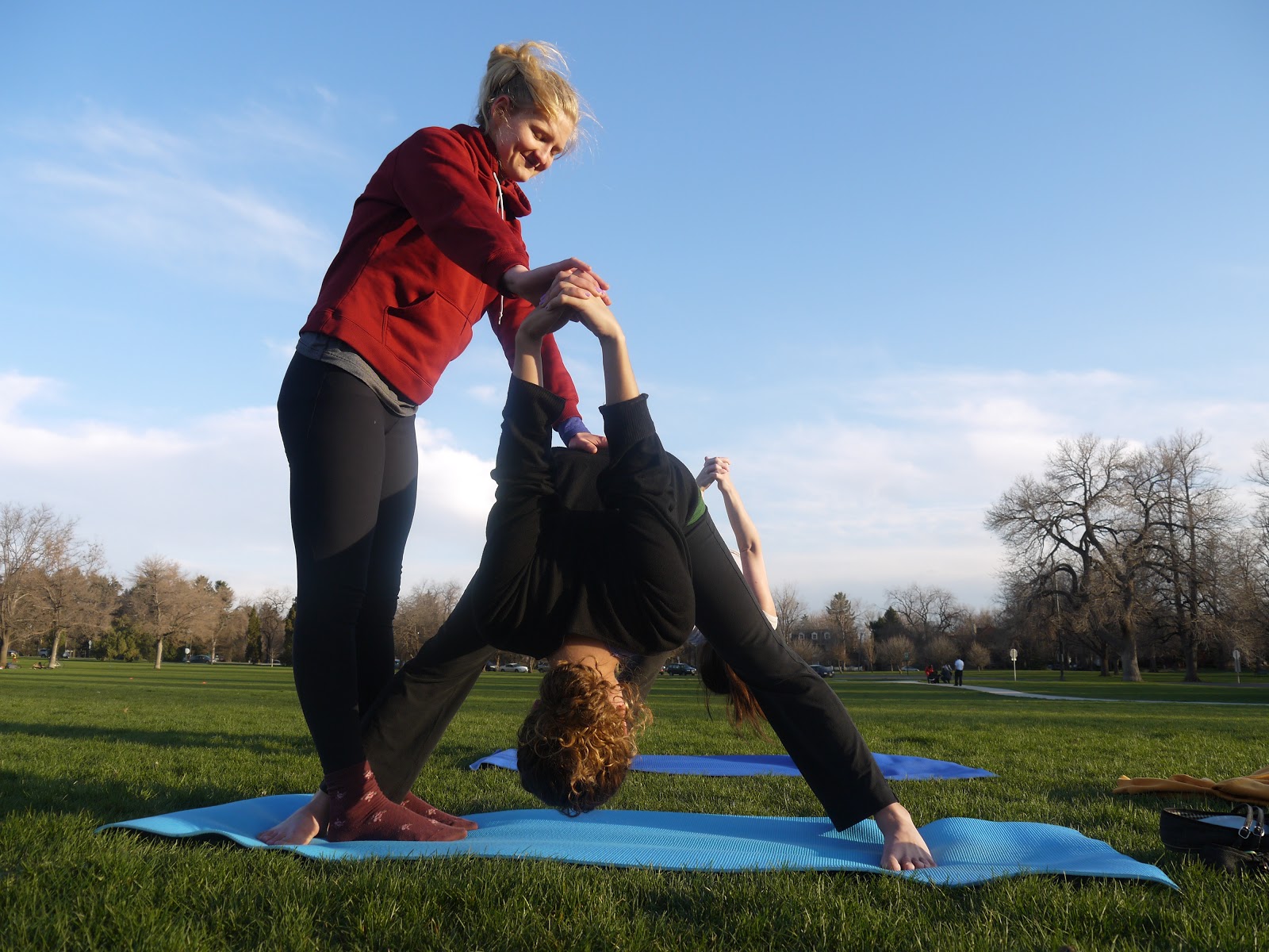 We started with some traditional yoga asanas, but things quickly took a turn for the adventurous. Before we knew it, we were getting upside down and even doing some partner poses.