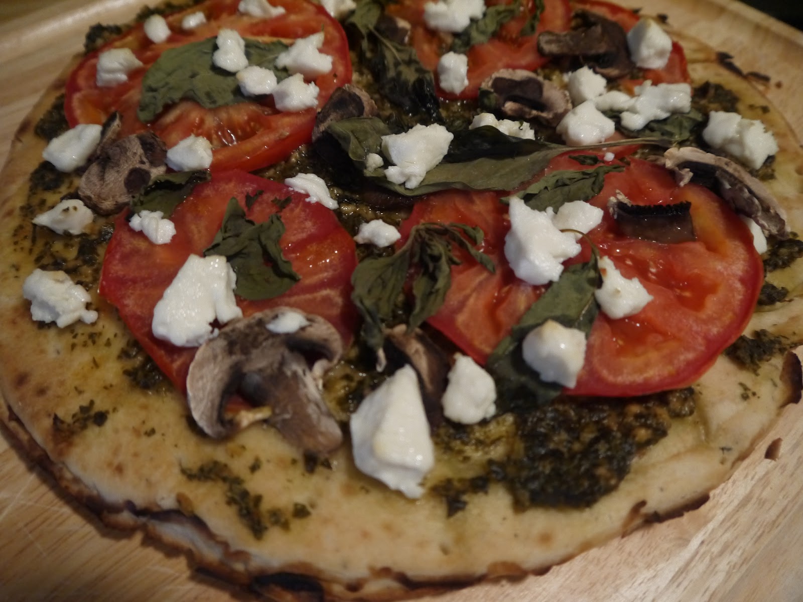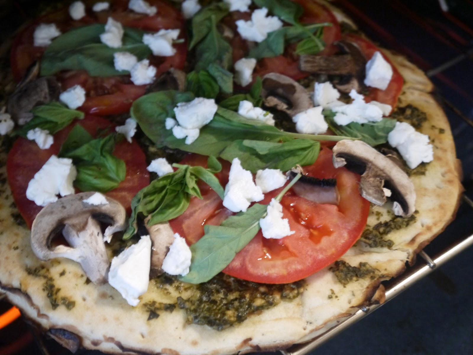 Baked Honey Goat Cheese and Tomato Pesto Pizza