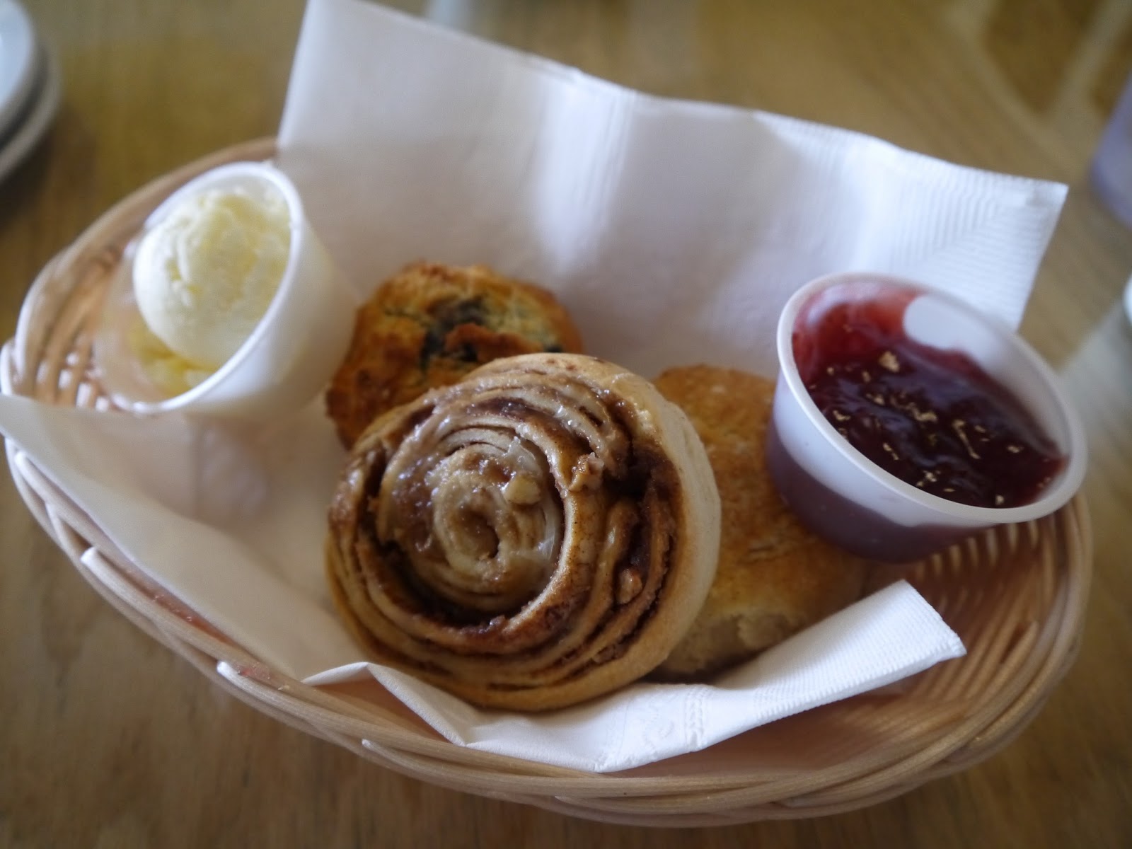I had my personal favorite, something I dream about between trips to Santa Fe, the Atole Pinon pancakes, made from blue corn and pine nuts, and cinnamon roles with real Mexican cinnamon.
