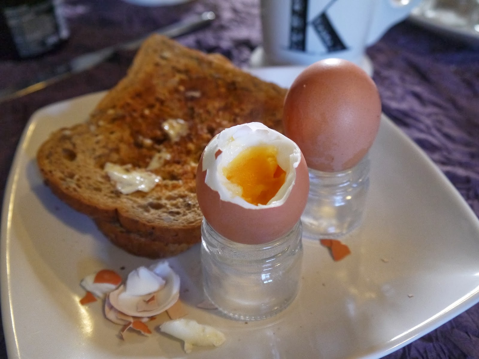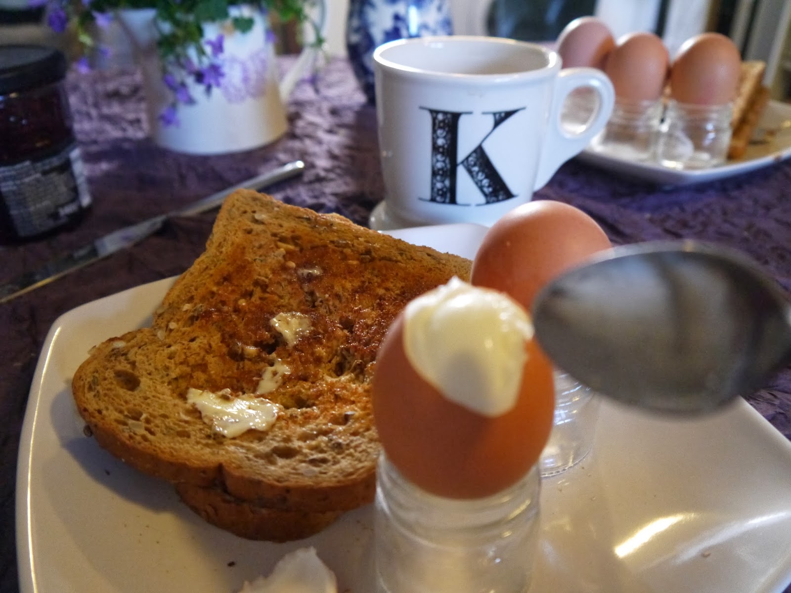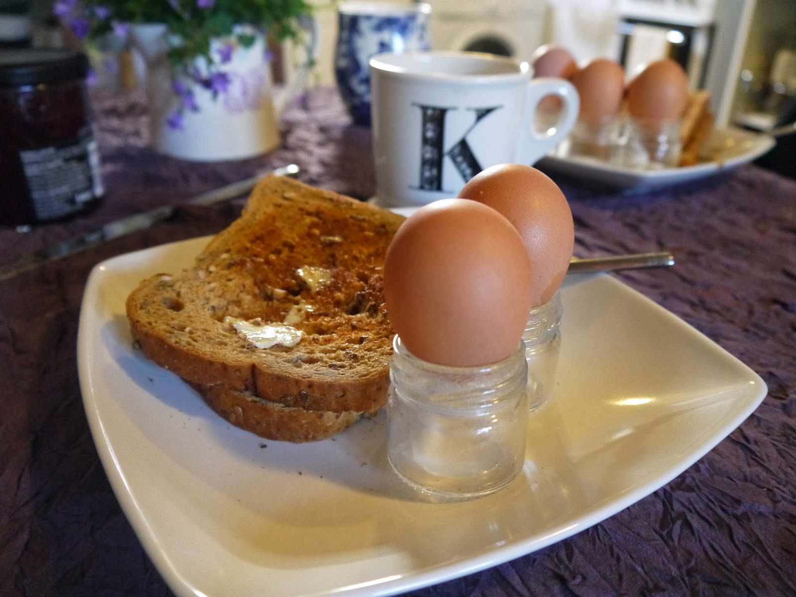 Halfway through boiling the eggs, I realized- we don’t have egg cups in the house! Luckily some small jam jars caught my eye and I improvised. I won’t let anything get between me and my breakfast!