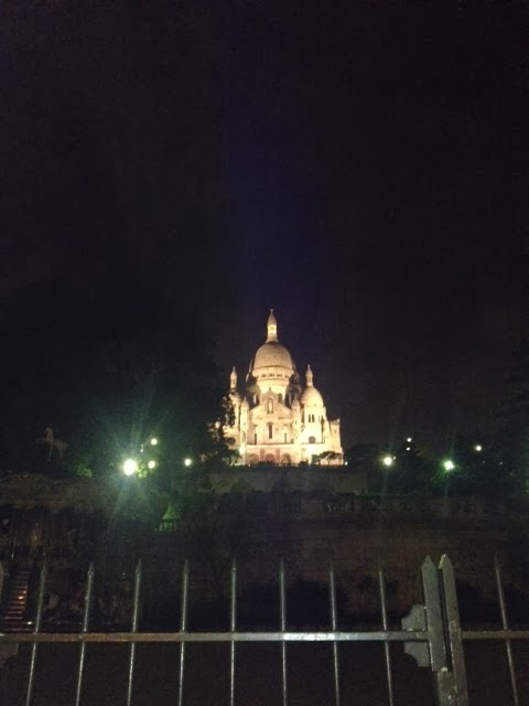 Its right around the corner from the Sacre Coeur, too, so I was able to snap a shot of it in all of its nighttime glory…