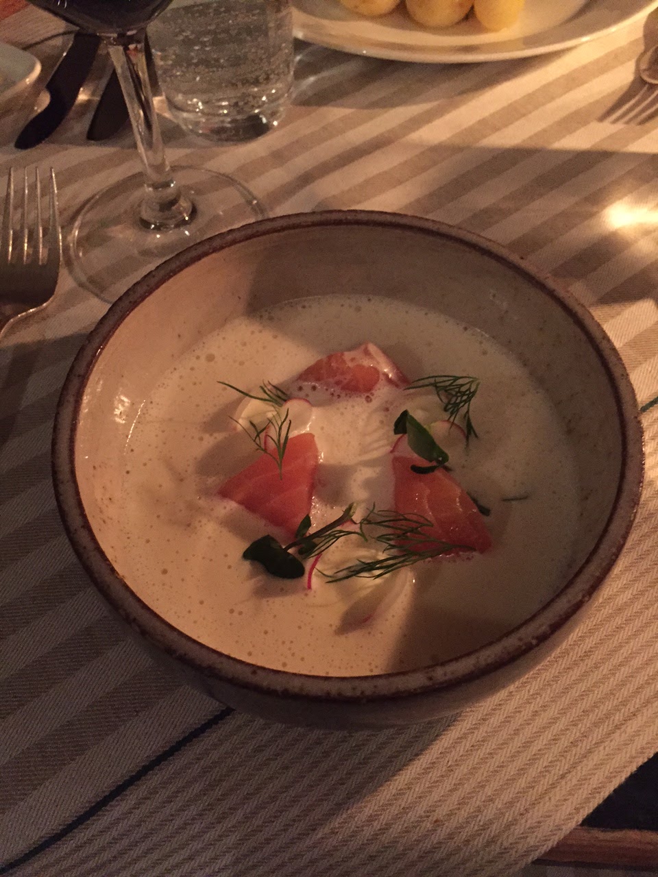The meal was spectacular, but the ambience probably the best part. Candle lit with grey and blue walls and minimal decorations, the attention here is on simple, traditional Scandinavian fare like my asparagus soup above. (One thing I’ve learned from traveling in the Nordic countries is that they love their asparagus in the spring. Can’t hate that!)