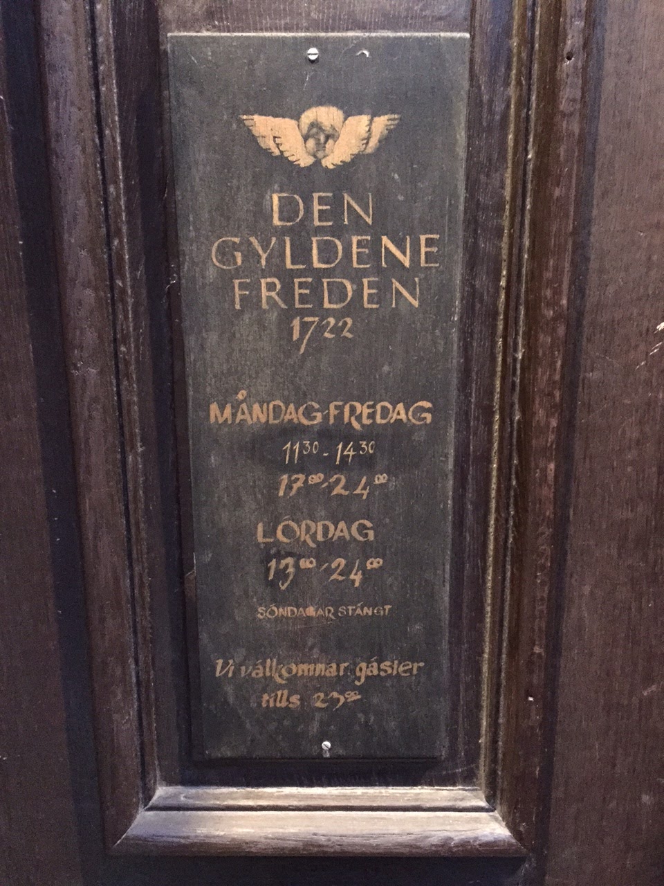After several hours of wandering, we got a bit chilly. Stockholm in late April is still slightly nippy- or at least, sometimes (but I’ll get to that). So we decided to try more traditional Swedish food by going to what our new friend the hotel receptionist called one of the coolest oldest pubs in Stockholm, Der Gyldene Freden. Located in Gamla Stan, or “Old Town,” its tucked down one of the narrow little alleyways, making it feel cosy against the cool night air.