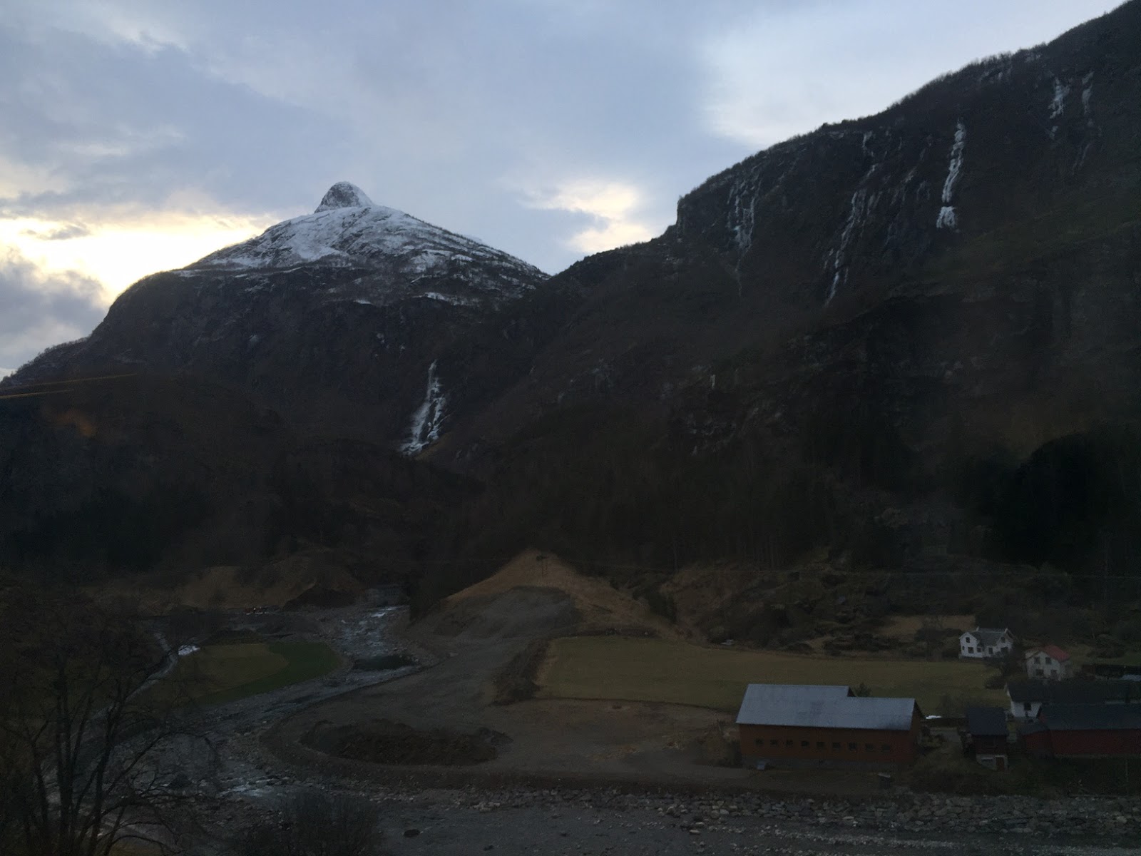 The train ride was pretty dark, but by the time the bus trip started, it was light and we were treated to amazing views of the fjords and mountains.