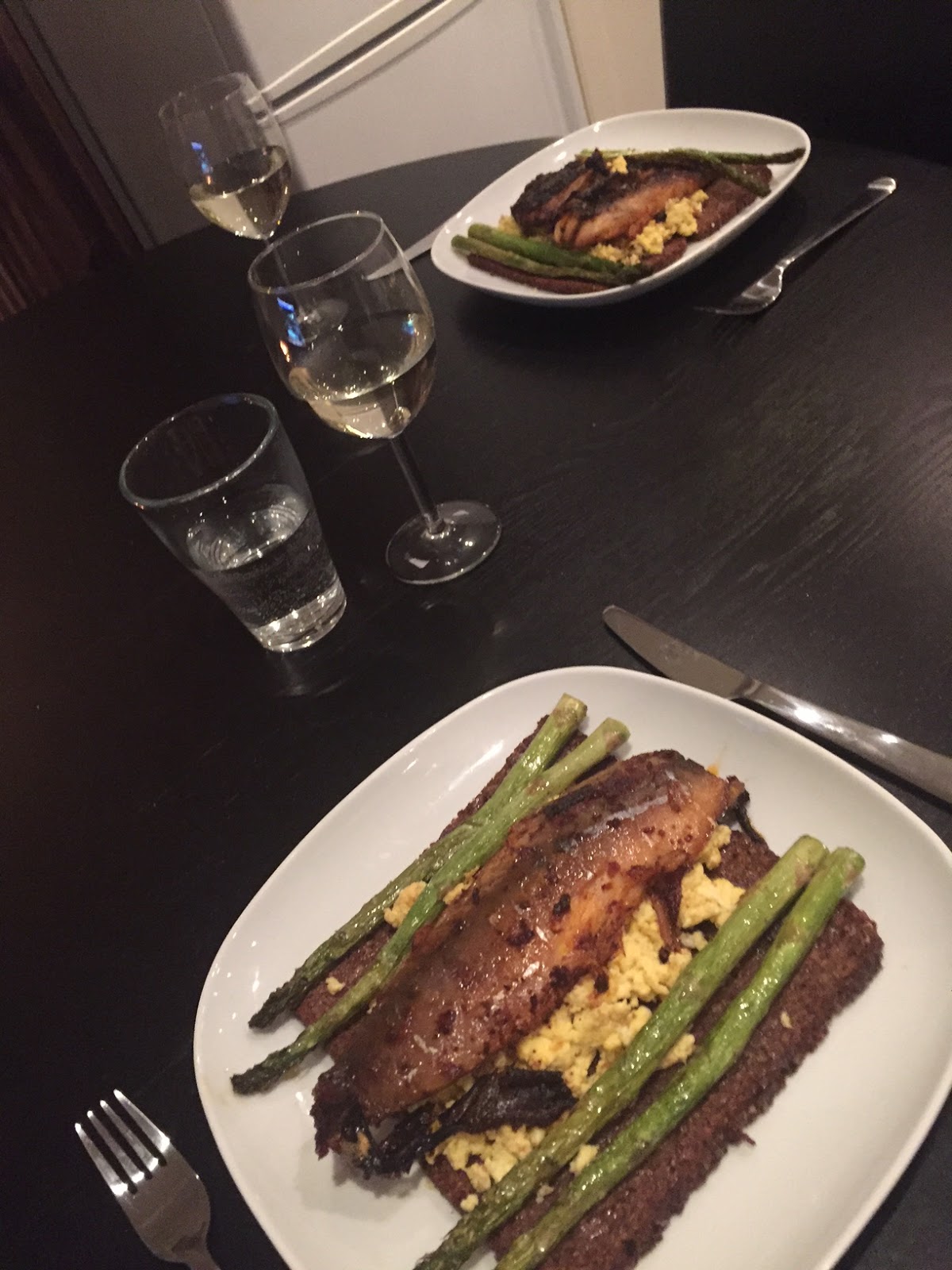 We ended up making our favorite Scandi dish, mackerel with scrambled eggs, Danish bread and asparagus. We made it before in Copenhagen, and it was just as good as I remembered.
